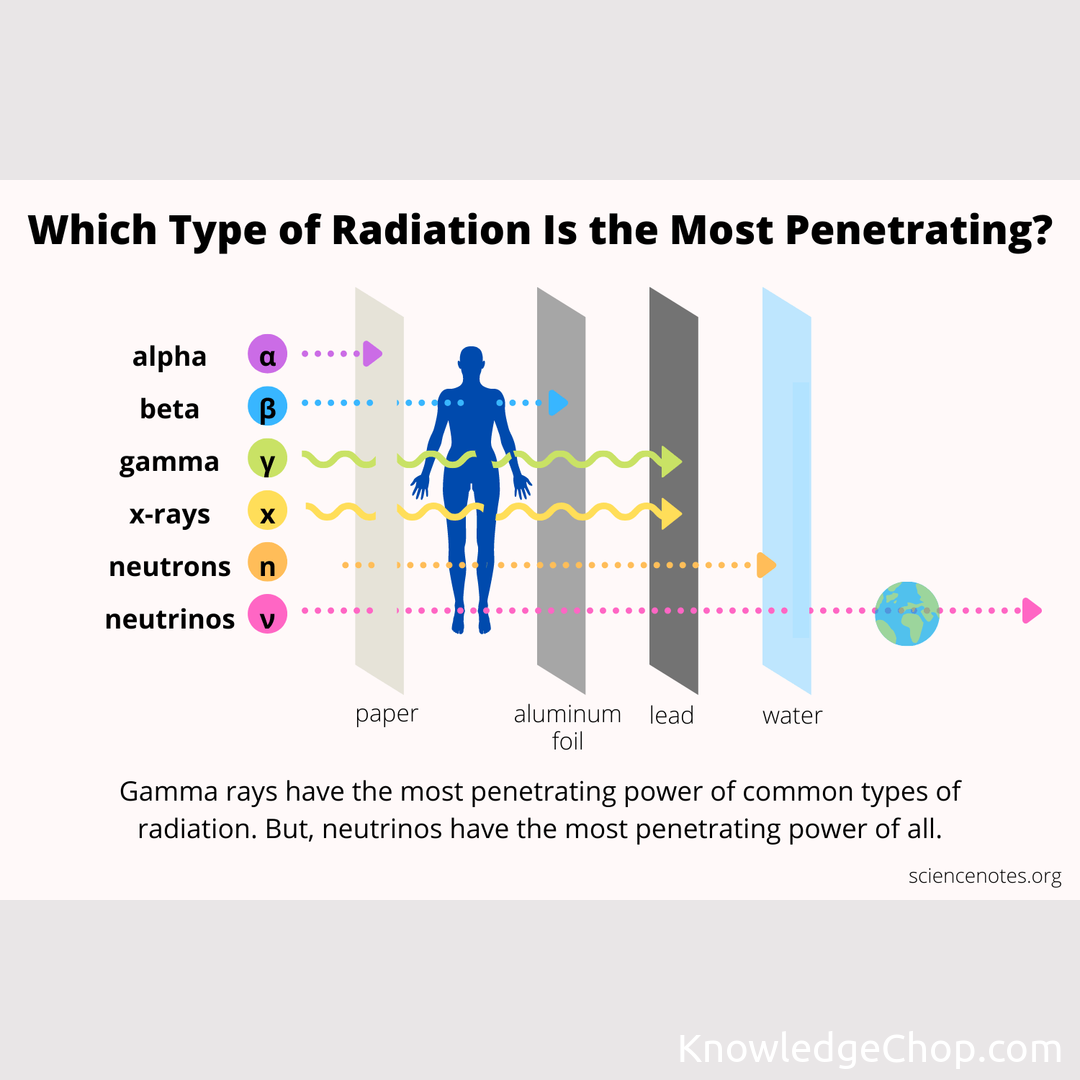 Penetrating power of different types of radiation