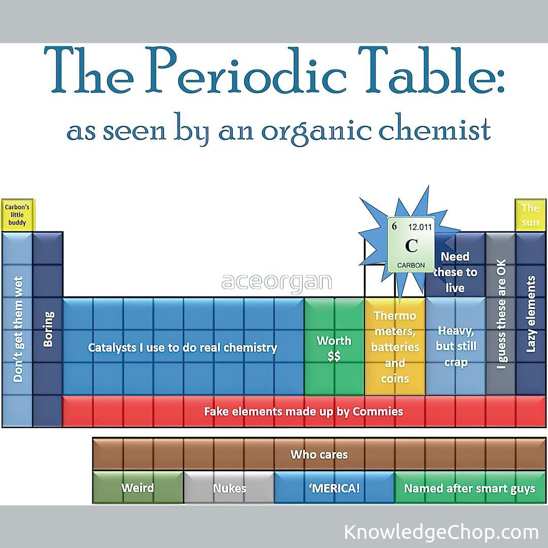 Home/Cool Guides/Periodic Table to an Organic Chemistπ Cool GuidesPeriodic Table to an Organic ChemistOct 8, 2022β’1 min read Periodic Table to an Organic Chemist Found this guide helpful? π₯·Share on XAll Cool GuidesHomeπMore Cool GuidesKeep exploring and learningThe Periodic Table: Unmasked by the Knowledge Ninja π₯·πΈRead βThe Element of Surprise: A Ninja s Guide to the Periodic Table of Fictional MineralsRead βReally helpful periodic table of elements π₯Όπ§ͺRead βPeriodic Table of Deep Sky ObjectsRead βThe Periodic Table of Plain English NamesRead βPeriodic table with pictures of how we interact with each elementRead βExplore All Cool Guides