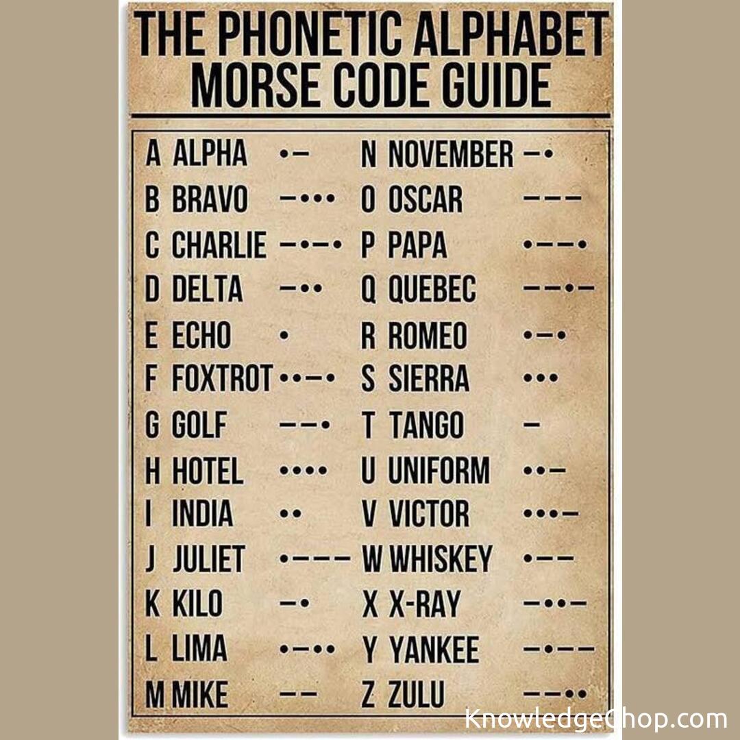 Phonetic alphabet Morse code guide.