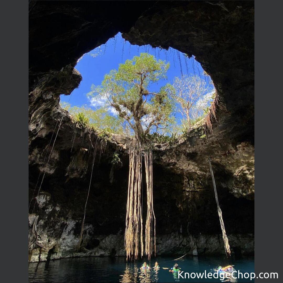Picture I took at a cenote near Mérida, Yucatán, México. There were two other cool cenotes in the immediate area as well but this one was definitely the most unique! [OC]