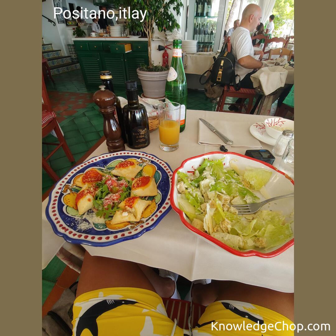 ravioli in positano,Italy..food was amazing..of course as an american i had to get a ceaser salad haha.but such natural and fresh food used to make the dish