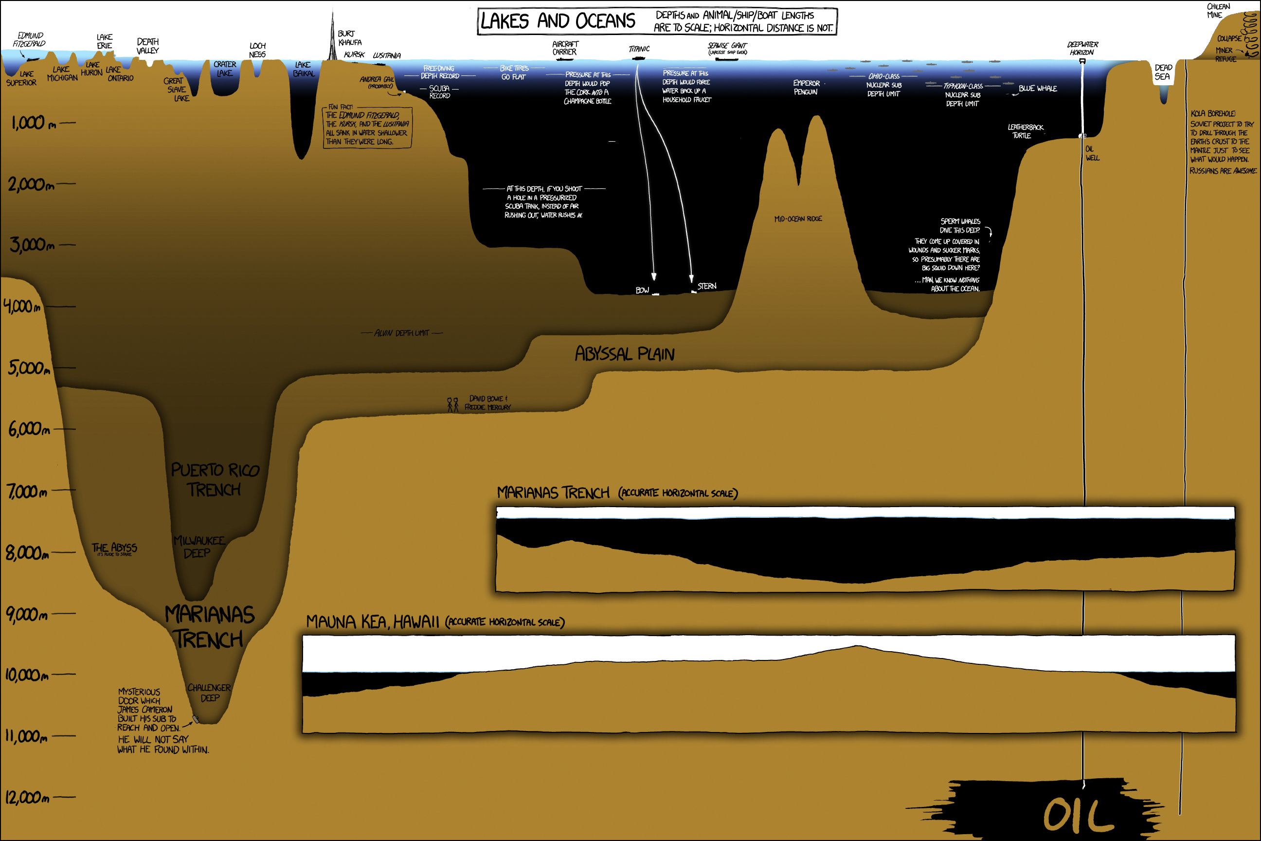 Home/Cool Guides/Scale depth of oceans and lakesπ Cool GuidesScale depth of oceans and lakesOct 28, 2019β’1 min read Click for More Info Found this guide helpful? π₯·Share on XAll Cool GuidesHomeπMore Cool GuidesKeep exploring and learningXKCD s guide to the scale of lakes and oceans.Read βDepth comparison of lakes and oceansRead βElevation and Depth comparison of Great lakes but added Marianas Trench, Lake Tilicho and the Dead SeaRead βOcean depth thingRead βMap showing the depths of lakes, including Lake Baikal in Russia.Read βOcean lifeforms and depthRead βExplore All Cool Guides