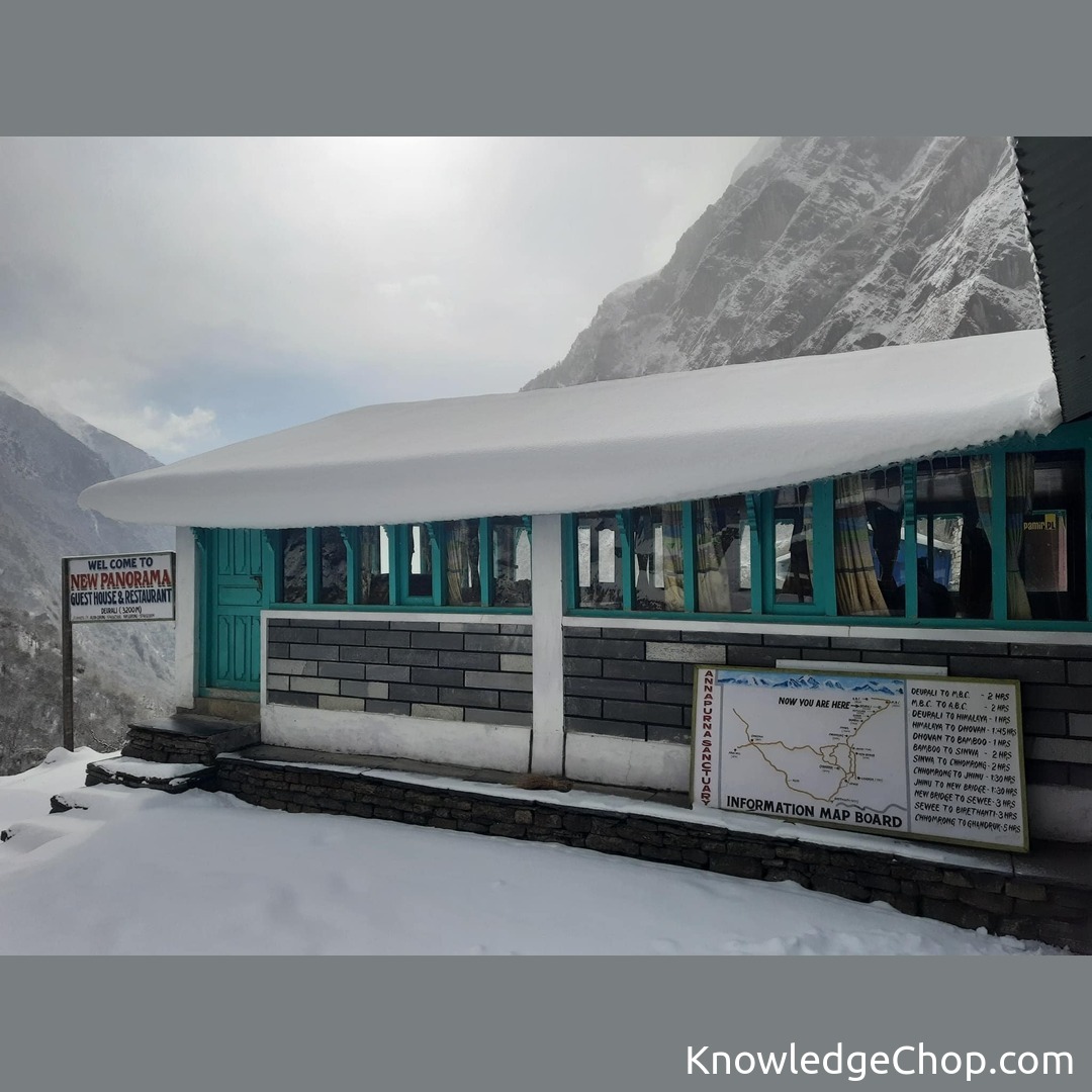 Snow clad restaurant at the Annapurna Sanctuary
