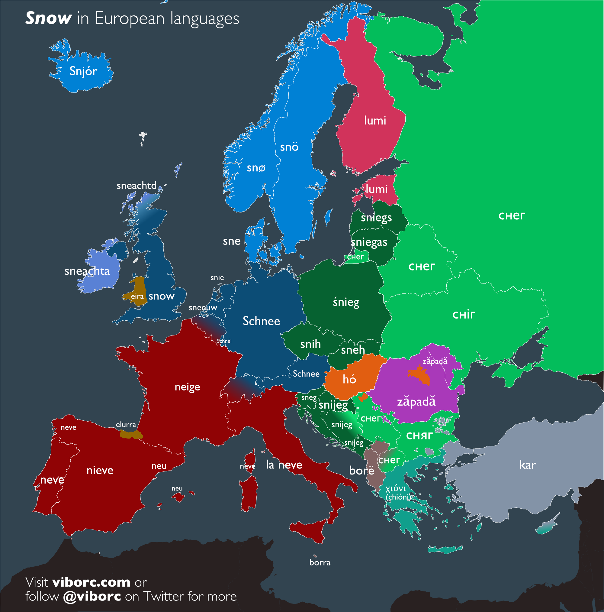 Home/Cool Guides/Snow in European languagesπ Cool GuidesSnow in European languagesJan 20, 2020β’1 min read Click for More Info Found this guide helpful? π₯·Share on XAll Cool GuidesHomeπMore Cool GuidesKeep exploring and learningThe evolution of two in various Indo-European languagesRead βTree of Indo-European languagesRead βToday is International Mother Language Day. Here s a flow chart of all the European languages based on Latin script.Read βBranching Out: Untangling the Indo-European Language Family Tree π³π€ΊRead βA guide that tells you which European language you are reading! Apologies if it has been posted beforeRead βWhen Europeans first stumbled upon Turtle Island there were 40 Million indigenous peoples speaking 1800 different languages. These societies had complex systems of mathematics, science, health economy, all grounded in an understanding of the interconnectedness of all life. Hereβs where they wereRead βExplore All Cool Guides