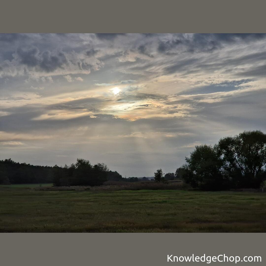 Sun hiding behind clouds just before sunset near Hütschenhausen in Germany