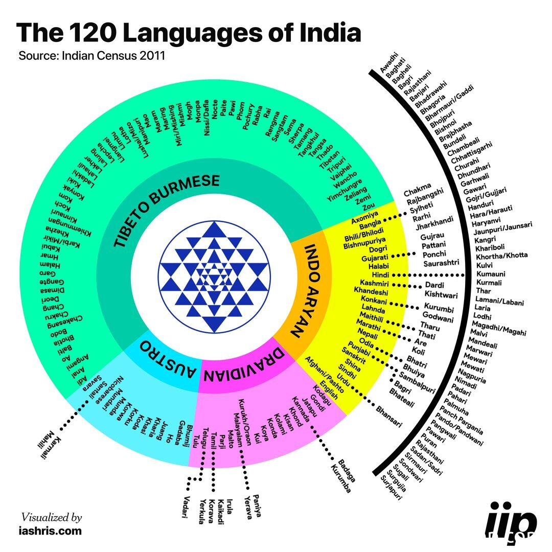 The 120 Languages of India with speakers of minimum 10,000, credits: @india.in.pixels