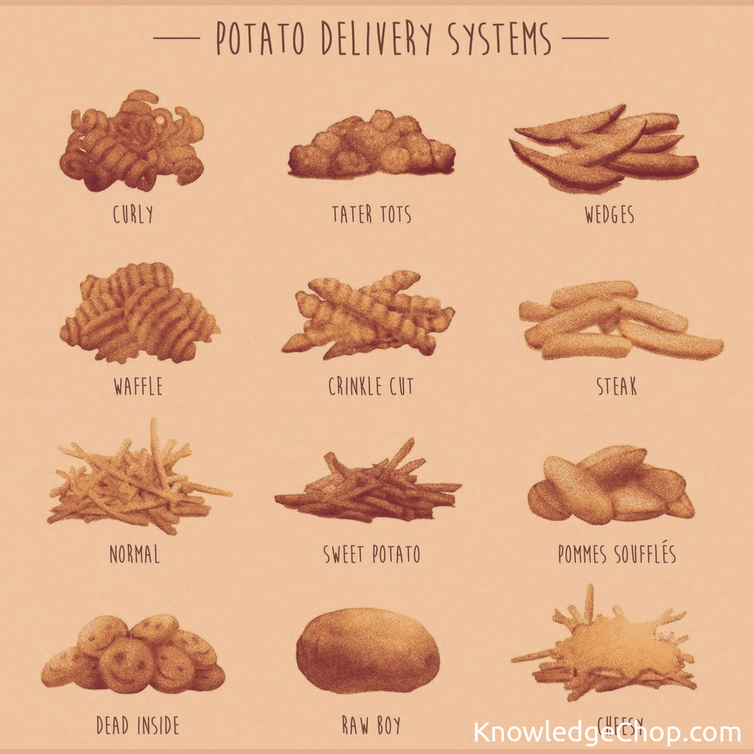 Admire the beauty of this retro set that reminds us even though potatoes may seem like a piece of everyday nutrition, their delivery systems make them legendary. Grab your sharpest stars and join the quest for the ultimate potato technique at KnowledgeChop.com! ๐ฅ๐