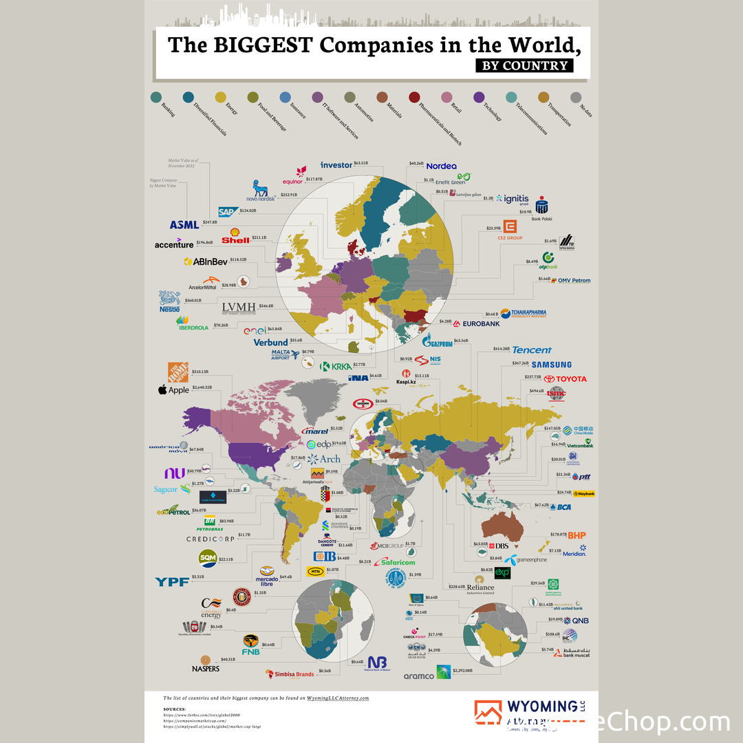 Check out this awesome map of the biggest companies in the world by country! #Map #Navigation #Graph #Facts #Cartography #Stripe #Geography #Ball-Shaped #NoPerson #Statistics #Visualization #Spherical #Presentation #Arrow #GraphicDesign #GraphPlot #Atlas #Country #Layout #Diagram