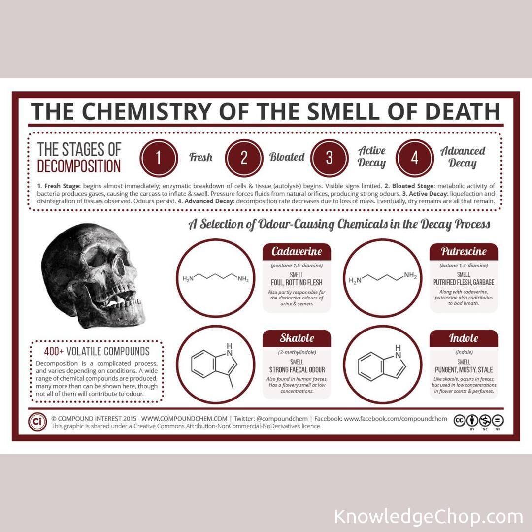 Home/Cool Guides/The Chemistry Of The Smell Of Deathπ Cool GuidesThe Chemistry Of The Smell Of DeathSep 23, 2022β’1 min read The Chemistry Of The Smell Of Death Found this guide helpful? π₯·Share on XAll Cool GuidesHomeπMore Cool GuidesKeep exploring and learningFrom Silent Killers to Modern Assassins: The Shift in Top Causes of Death π (1900 vs 2010)Read βThe Headline Death Gap: Unmasking the Media Maze with Knowledge Ninja ποΈπ₯Read βWhen Numbers Speak Louder than Swords: Dictators Deadly Death Toll πβοΈRead βThe Chemistry of Gemstone ColorsRead βchemical compounds for the smell of decompositionRead βOdds of deathRead βExplore All Cool Guides