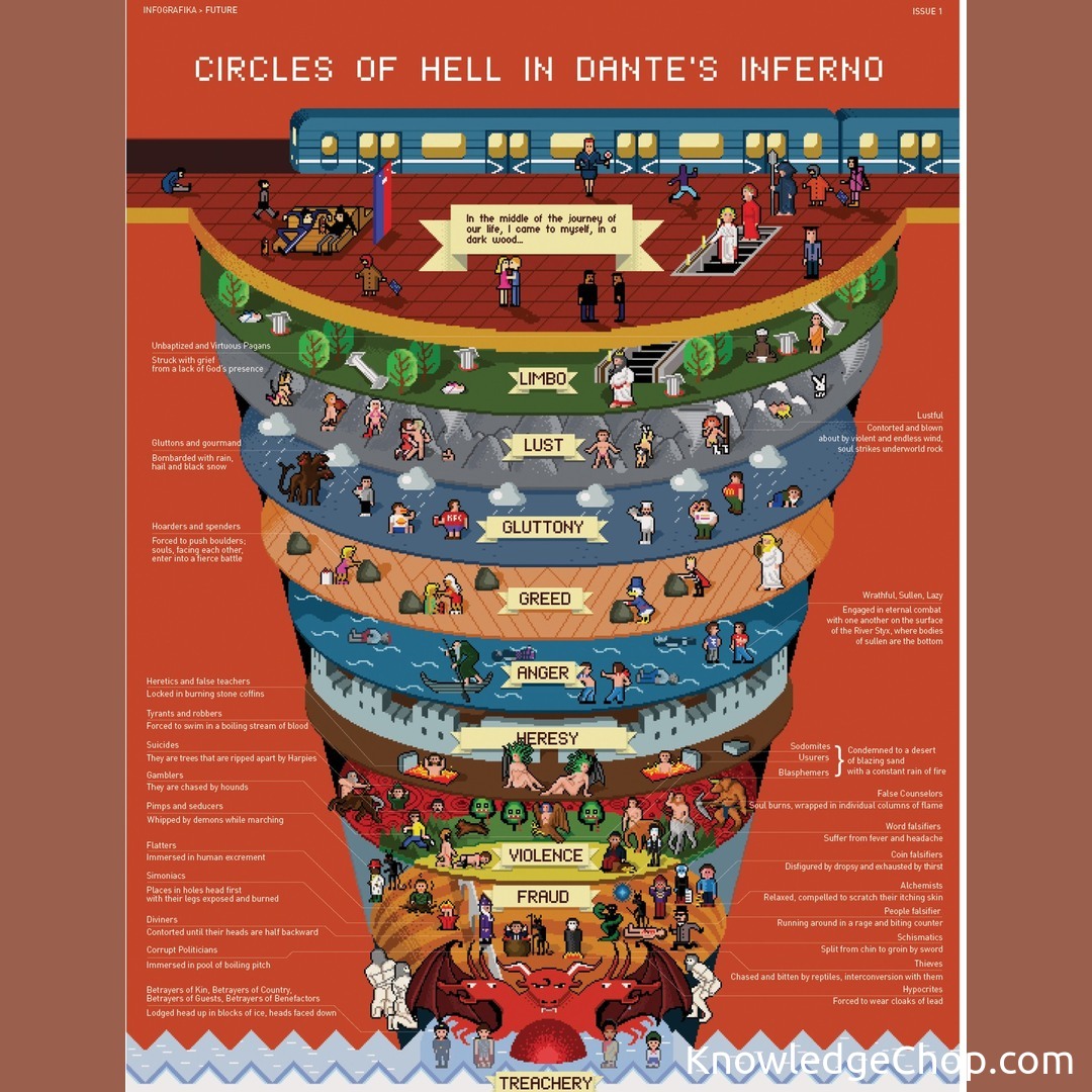 The circles of Hell from Dante s Inferno in 8-bit form