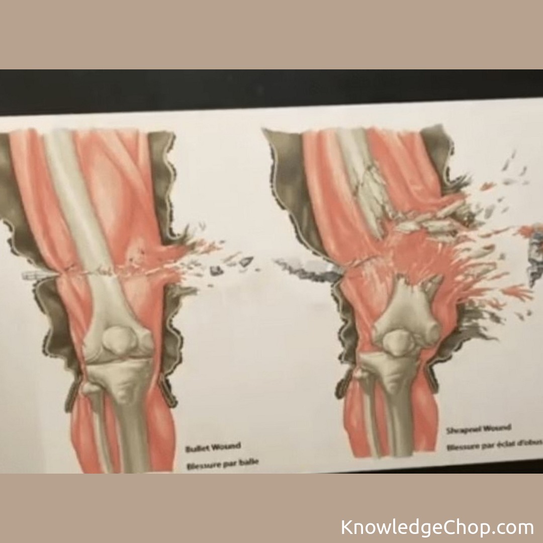 The contrast between a bullet wound and a shrapnel injury is remarkable. #Anatomy #Horizontal #People #Biology #Indoors #Adult #Science #Illustration #NoPerson #Woman #Paper #Medicine #Cardiovascular #SideView #Wear #Man #Painting #Vertical #Physiology #Radiography