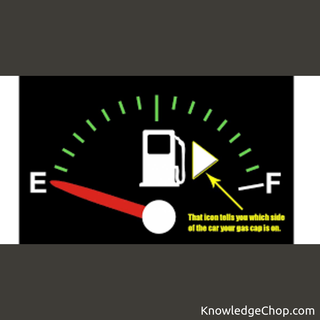 The little arrow on the fuel gauge tells you which side the car’s fuel cap/handle is located on.