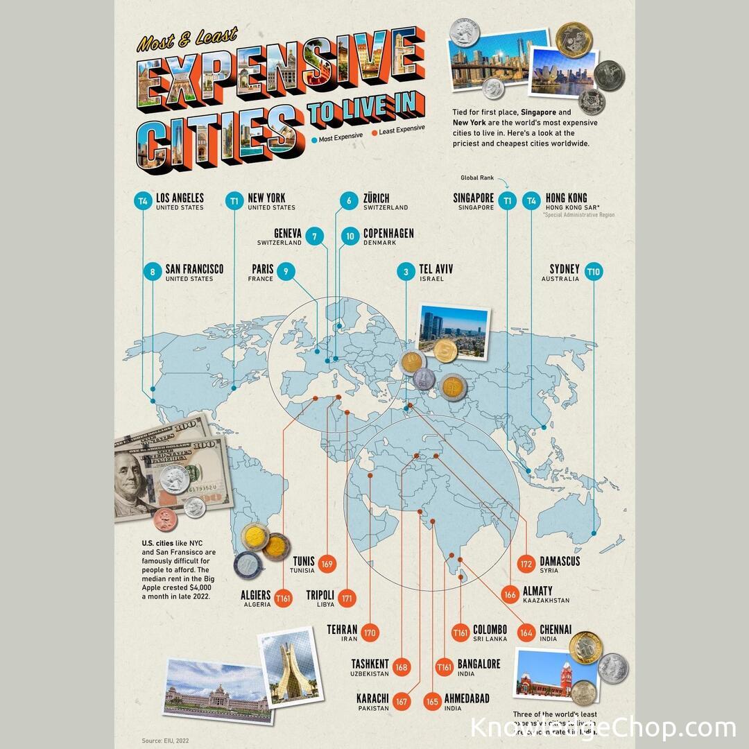 Check out this amazing infographic that reveals the most and least expensive cities to live in! #Facts #Map #Graph #Layout #Navigation #Statistics #Stripe #Diagram #Vectors #Presentation #Visualization #Arrow #Ball-Shaped #Pie #Draft #Disposal #Template #Sandbank #Data #Cartography