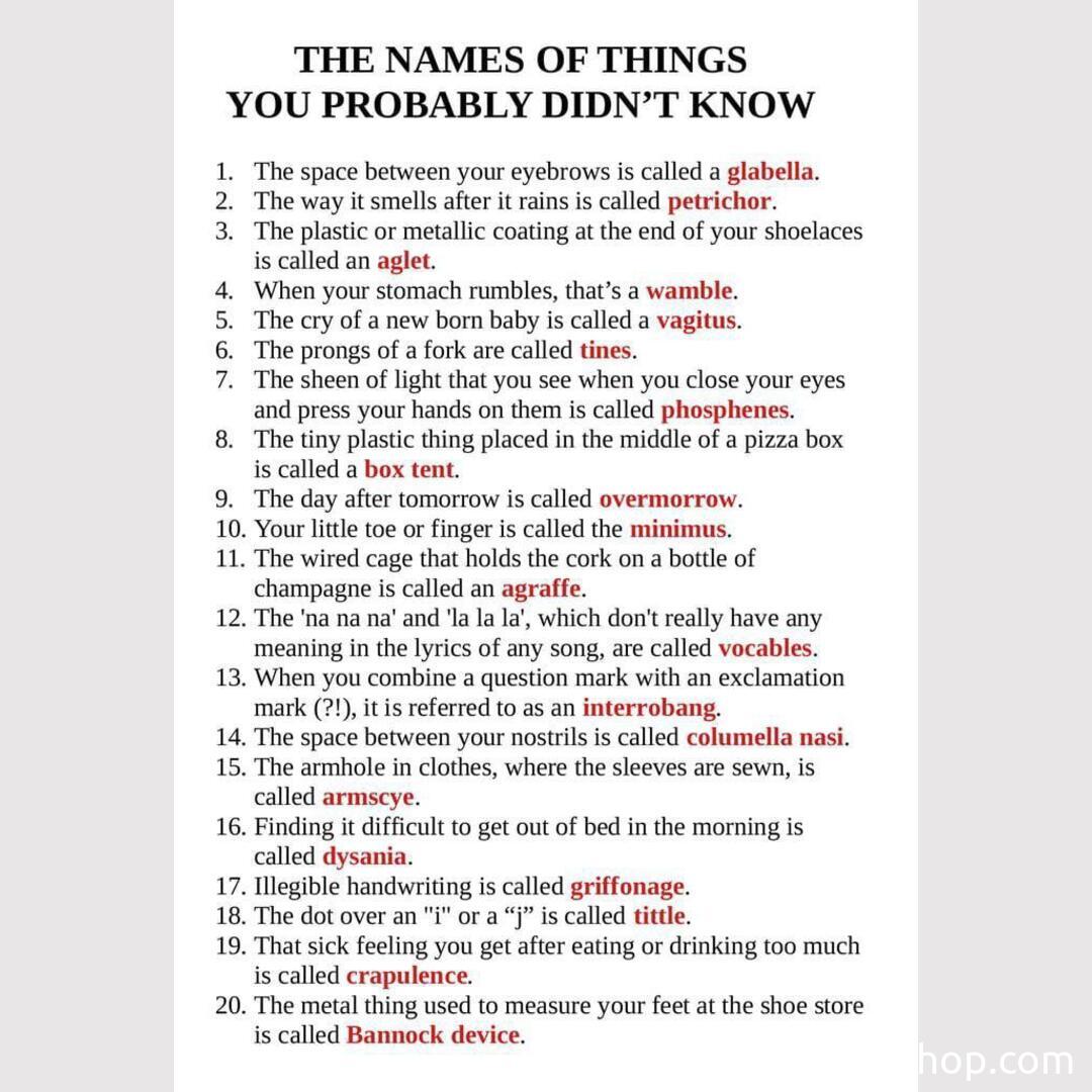 Home/Cool Guides/The name of things you probably didn’t k...📊 Cool GuidesThe name of things you probably didn’t knowApr 5, 2022•1 min read The name of things you probably didn’t know Found this guide helpful? 🥷Share on XAll Cool GuidesHome📊More Cool GuidesKeep exploring and learningThe name of things that you probably didn’t knowRead →Names of things you probably didn’t knowRead →What probably you didn t know about buffaloes. They never forget some one who harassed them . Like the elephant, the African buffalo is renowned for its exceptional memory. They are known to ambush and attack hunters that have wounded or injured them – even years later!Read →Handy computer tricks you probably didn t know existed. I don t know if this has been posted beforeRead →Honestly didn t know they all had different names.Read →Honestly didn t know they all had different names.Read →Explore All Cool Guides