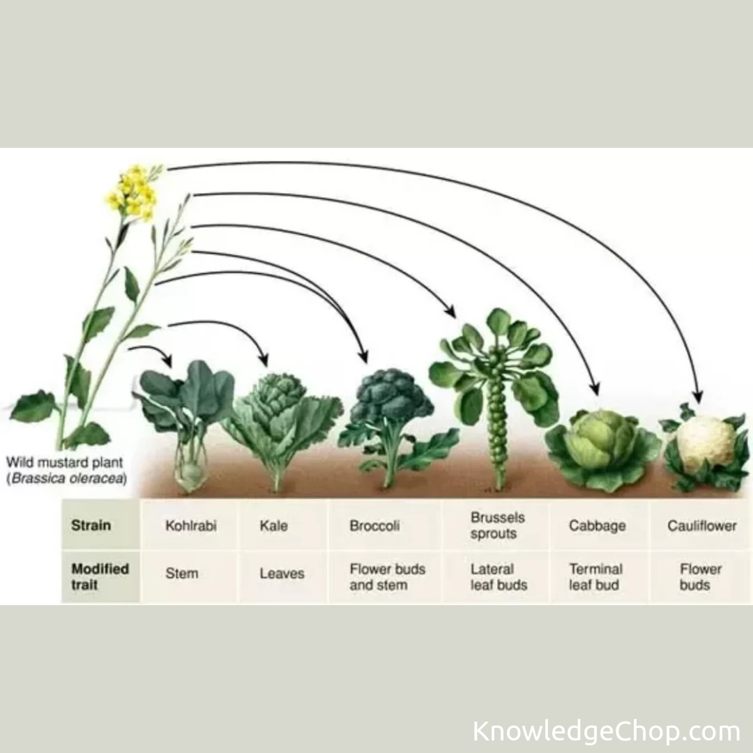 Wild mustard (Brassica oleracea) is an unassuming plant that has undergone extraordinary transformations through artificial selection. As a knowledge ninja, let’s delve into the process of selection for specific traits: leaf, stem, flower bud, and more.
