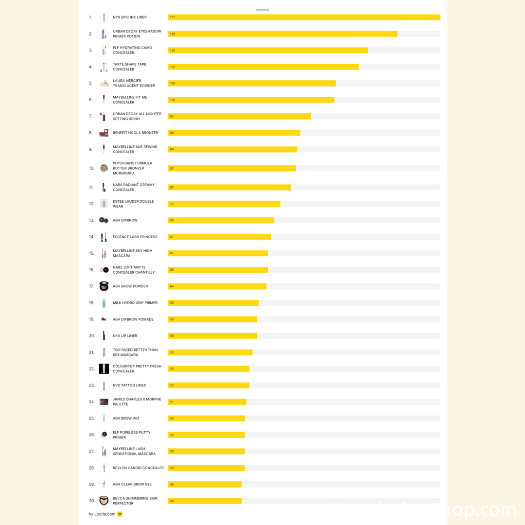 The top 30 most discussed products on r/MakeupAddiction in 2022