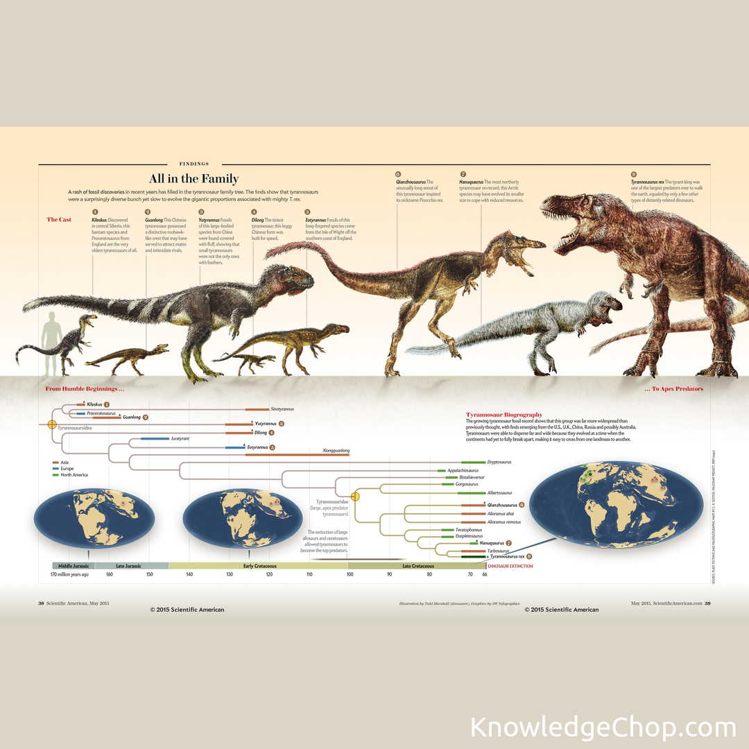 Check out this amazing illustration of the Tyrannosaur family tree! From prehistoric predators to modern-day wildlife, this exhibition is sure to be a monster hit! #Reptile #Jurassic #Dinosaur #Paleontology #Illustration #Evolution #Stripe #Wildlife #Predator #Prehistoric #Zoology #Monster #Exhibition #Animal #Wild #Biology #NoPerson