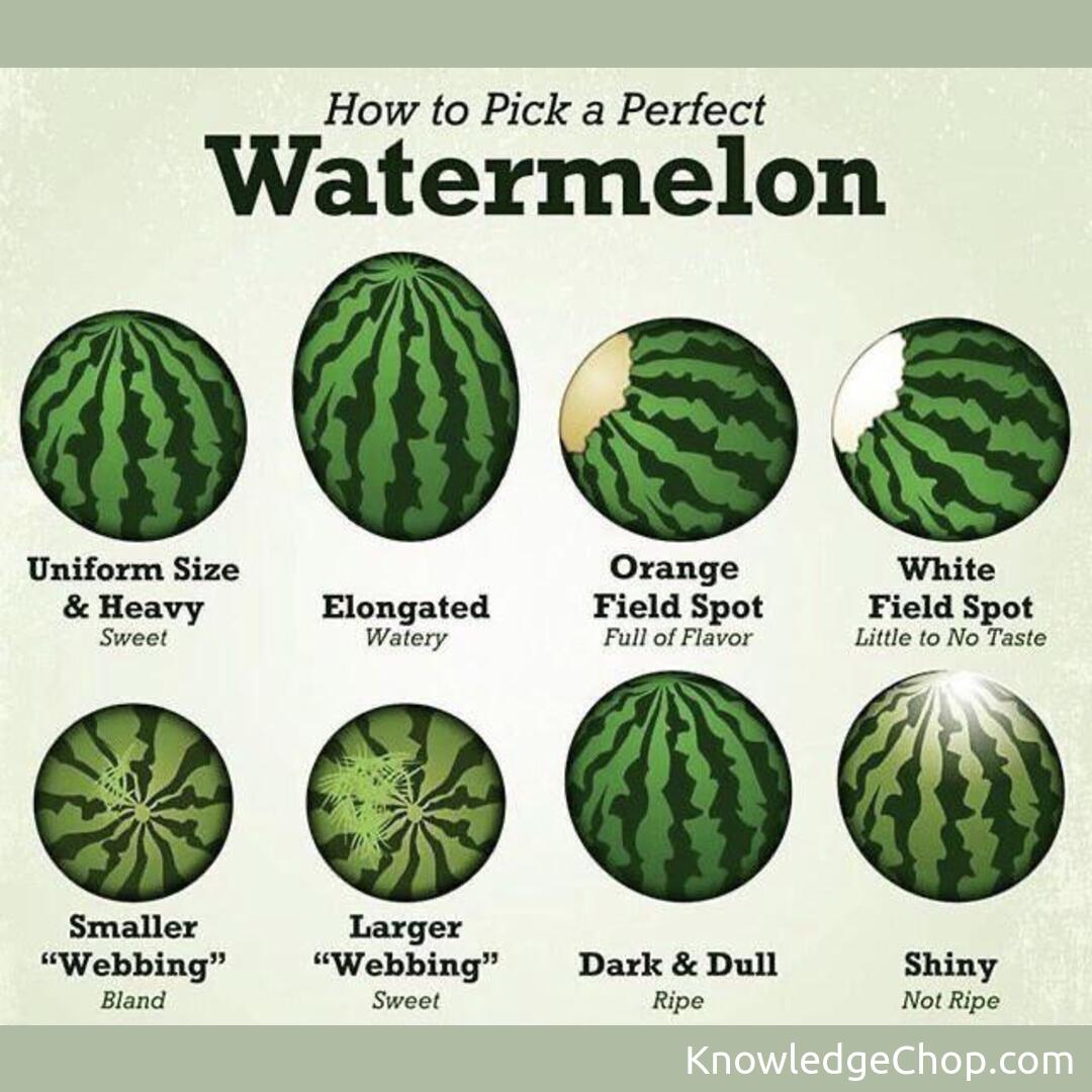 Next, observe the surface pattern of the watermelon to determine its readiness for consumption. The Knowledge Ninja knows that evenly-dispersed, rich green stripes indicate that the watermelon has reached its peak of ripeness.