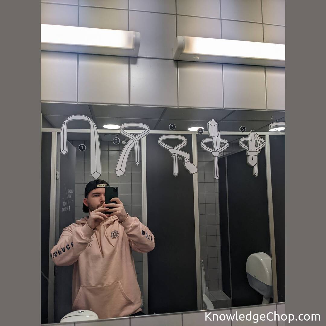 This bathroom mirror in Tallinn Airport has instructions on how to tie a tie