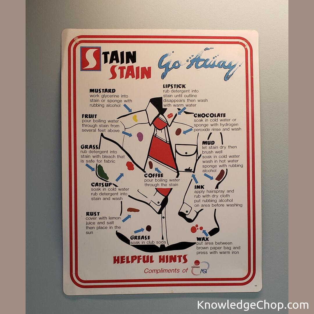 This helpful sign with stain removal tips in my building’s laundry room