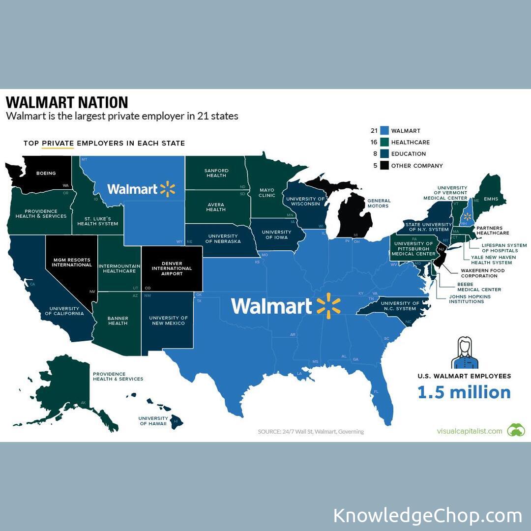 This is pretty cool from Visual Capitalist! The biggest employer in each state of the USA.