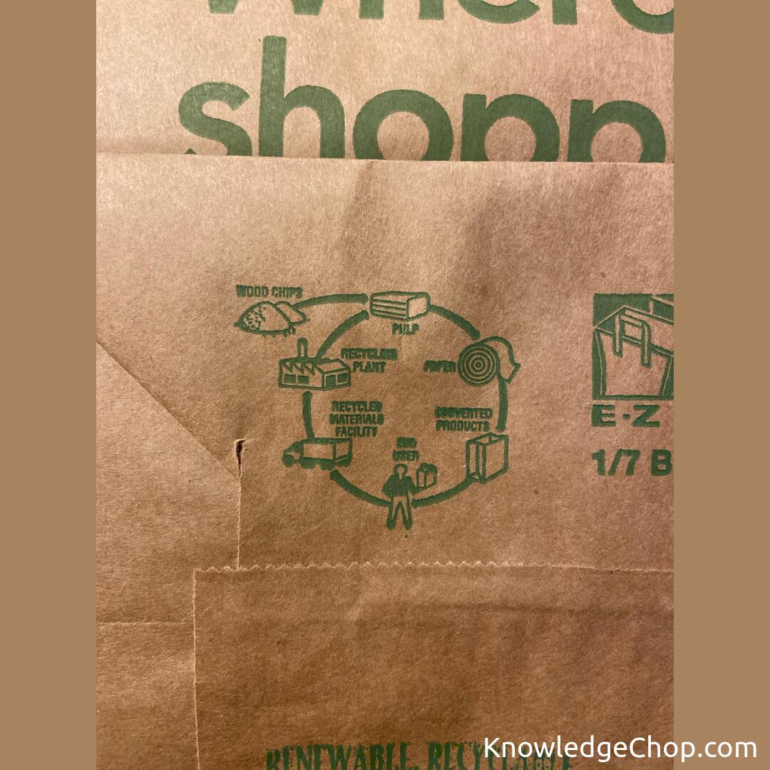 This stamp on the bottom of a paper shopping bag from Publix that explains how it gets recycled.