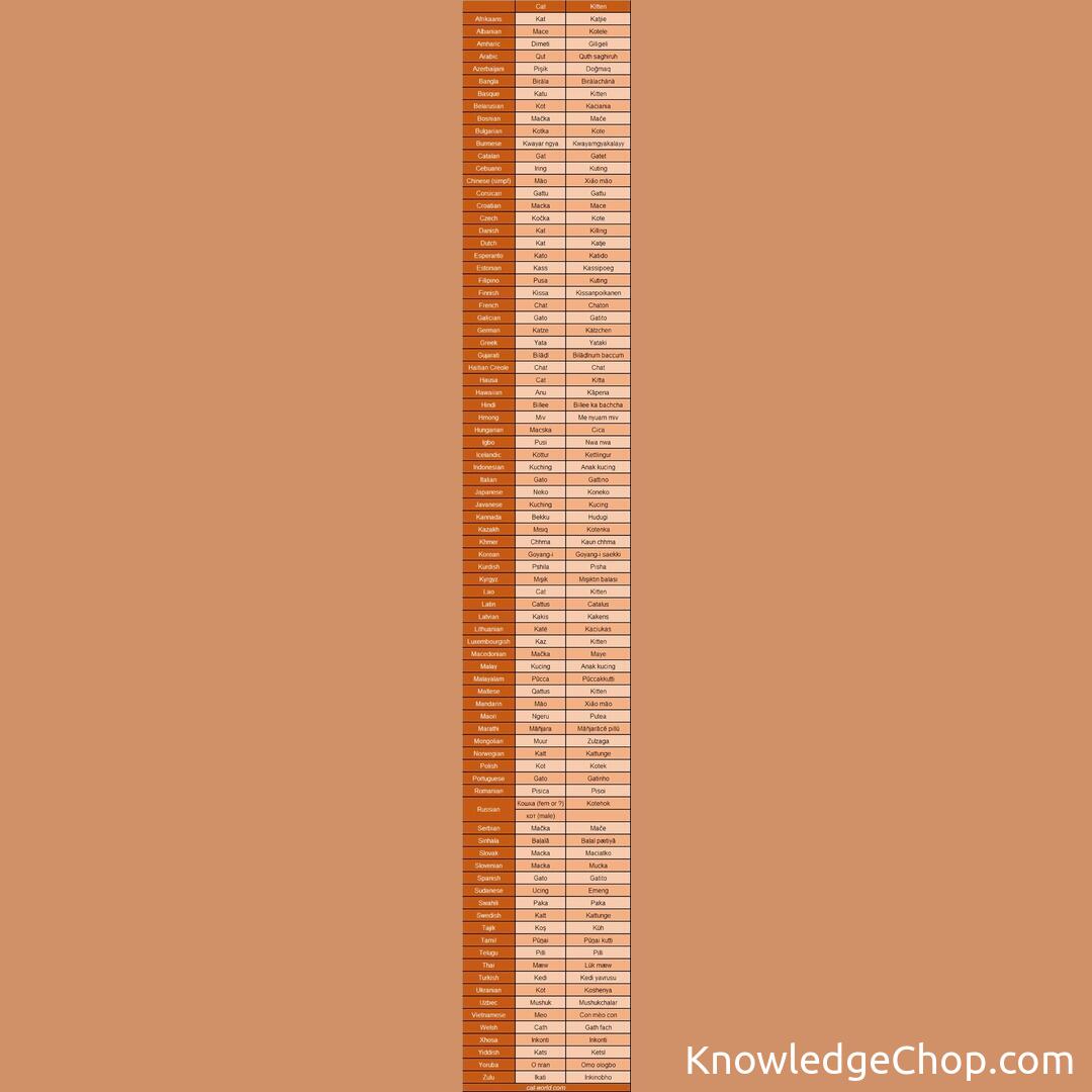 Thought someone else might also enjoy how cat is said in almost any language