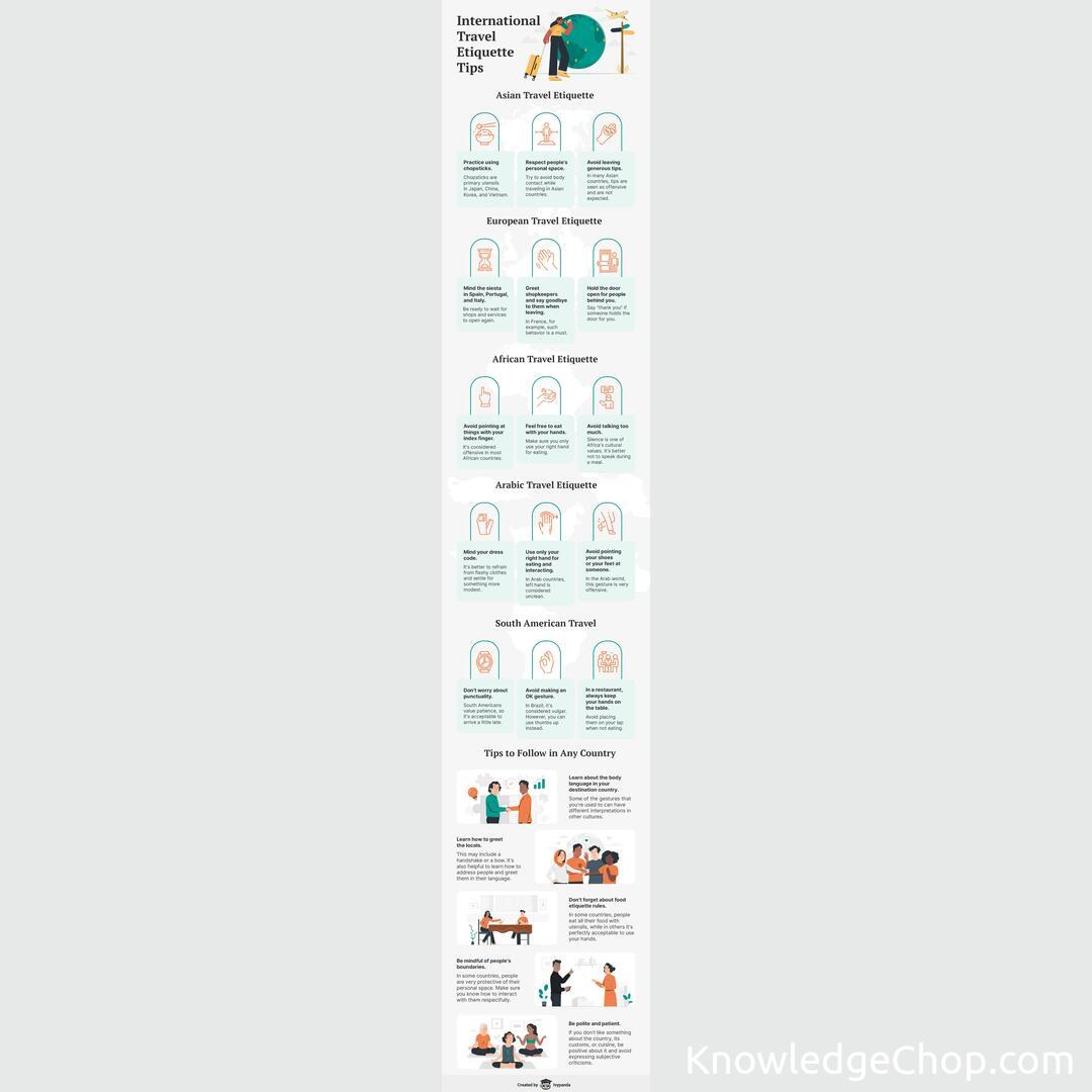 Home/Cool Guides/Travel Etiquette Around The Worldπ Cool GuidesTravel Etiquette Around The WorldFeb 18, 2022β’1 min read Travel Etiquette Around The World Found this guide helpful? π₯·Share on XAll Cool GuidesHomeπMore Cool GuidesKeep exploring and learningI m traveling around the world One of the best captures of Deraniyagala in Sri LankaRead βTravelers guide to electrical outlets around the worldRead βTravelers guide to electrical outlets around the worldRead βThe Privacy Dojo: Mastering the Art of Internet Privacy Around the WorldRead βSwordplay Around the World: A Ninjaβs Guide to Blade MasteryRead βAround the World in 80 Coffees: Unmasking the Bean with Knowledge NinjaRead βExplore All Cool Guides