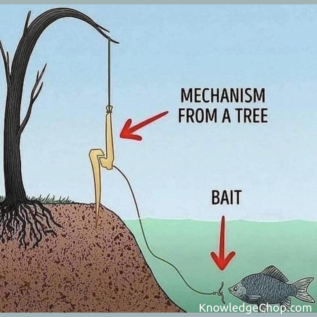 Check out this amazing tree fish catching mechanism! #Outdoors #NoPerson #Illustration #Horizontal #Vertical #Nature #Tree #Retro #Sky #Growth #Creativity #Text #Business #Travel #Flora #Landscape