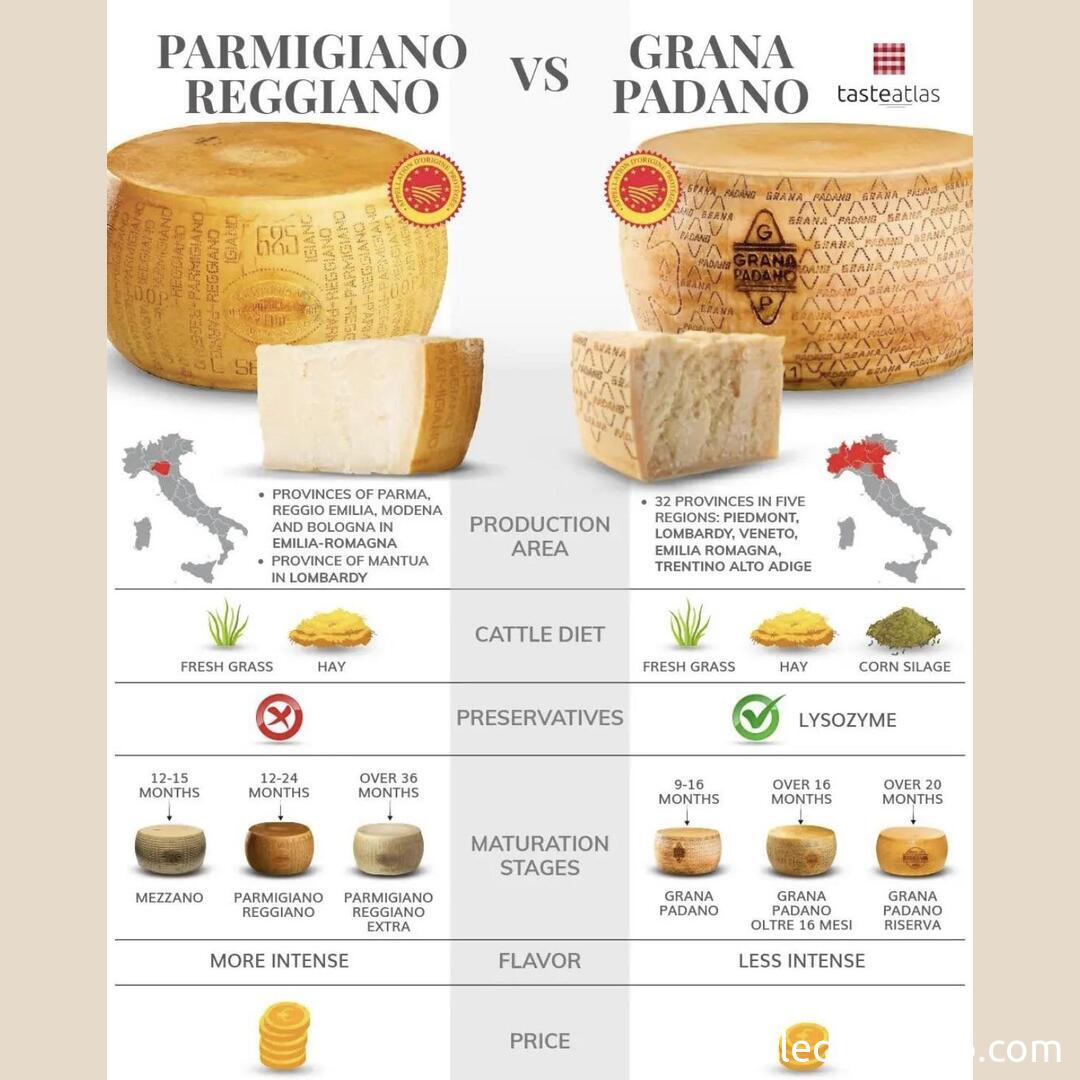 Discover the delicious taste of two Italian cow milk hard cheeses: #ParmigianoReggiano and #GranaPadano! Perfect for adding flavor to any dish, these two cheeses are made with the finest ingredients and have a unique taste that can’t be beat. #Food #Health #Taste #Ingredients #Collection #Menu