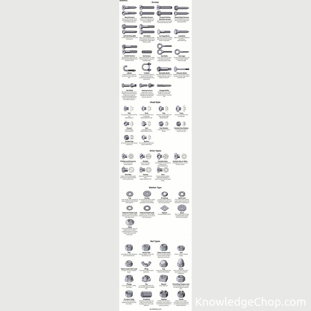 Home/Cool Guides/Types of screws, screw heads, washers an...📊 Cool GuidesTypes of screws, screw heads, washers and nutsMay 5, 2022•1 min read Types of screws, screw heads, washers and nuts Found this guide helpful? 🥷Share on XAll Cool GuidesHome📊More Cool GuidesKeep exploring and learningTypes of Nuts, Bolts, ScrewsRead →A visual guide on different types of screw heads and drivesRead →Types of screw headsRead →Guide to screw headsRead →Types of Screw DrivesRead →Types of Screw DrivesRead →Explore All Cool Guides