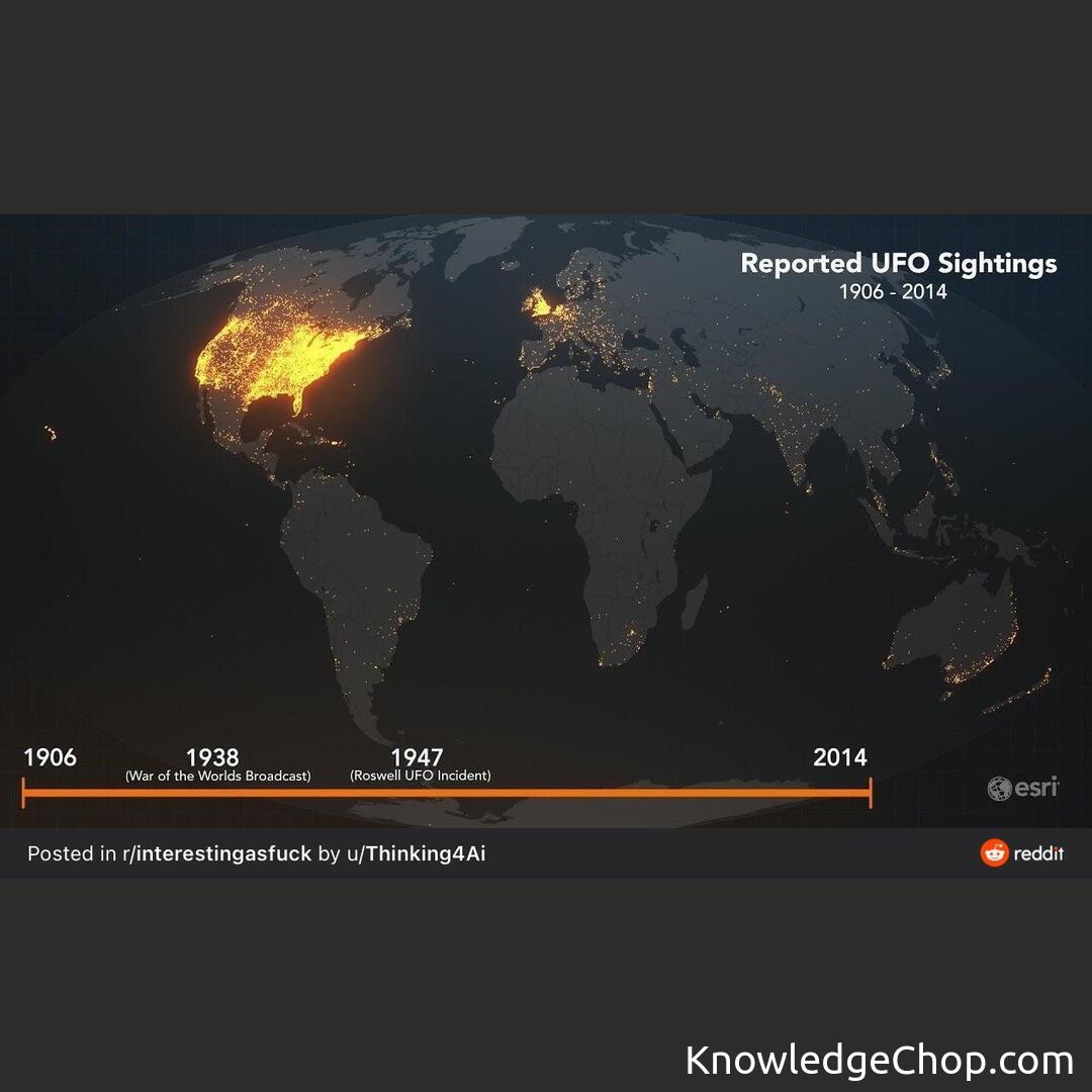 UFO reports across the globe from 1906 to 2014