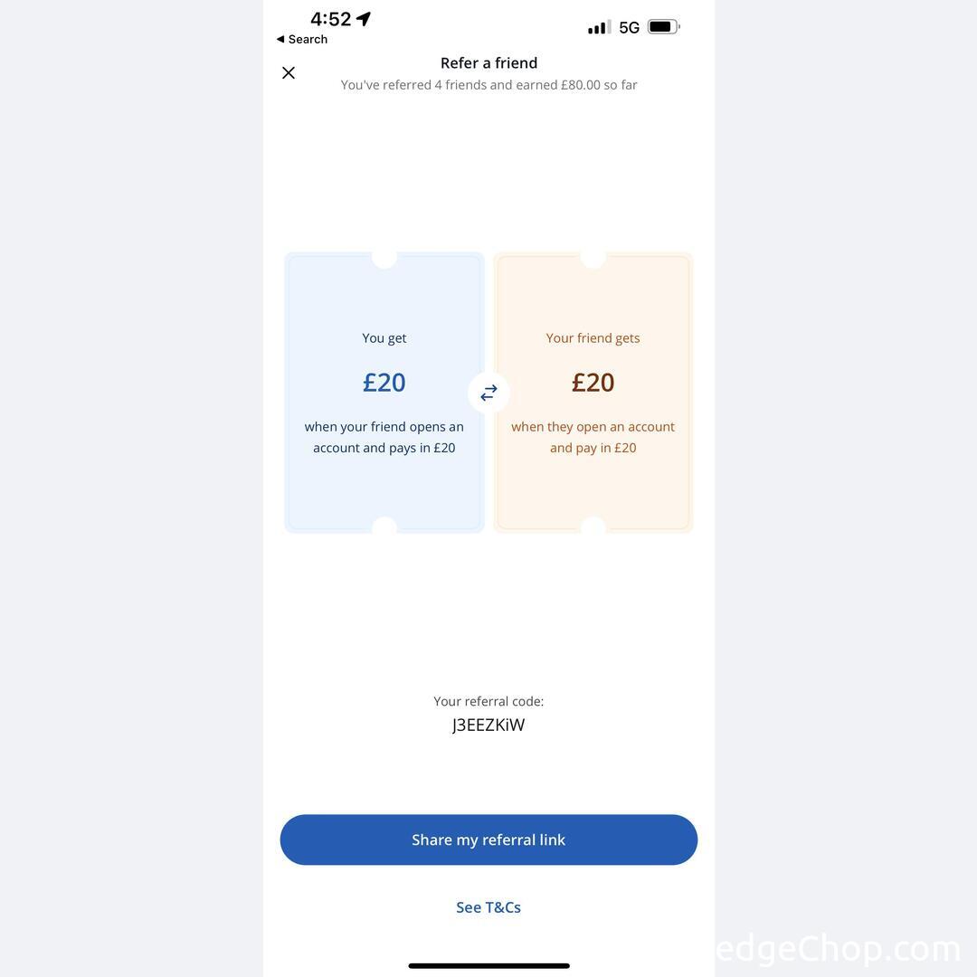 UK: Easy £20 by using this referral code after joining chase bank