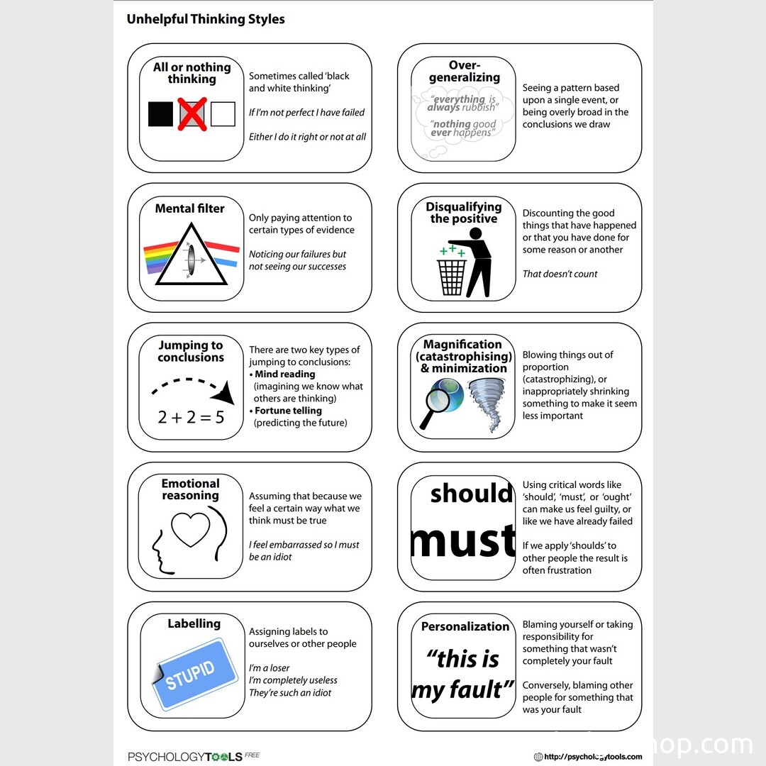 Home/Cool Guides/Unhelpful thinking styles📊 Cool GuidesUnhelpful thinking stylesApr 10, 2022•1 min read Unhelpful thinking styles Found this guide helpful? 🥷Share on XAll Cool GuidesHome📊More Cool GuidesKeep exploring and learningUnhelpful Thinking Styles for mental healthRead →A Hierarchy of Thinking Styles | Adam Grant [Jan 2022]Read →A Hierarchy of Thinking Styles | Adam Grant [Jan 2022]Read →Hat styles chart. Helpful for new buyers.Read →Made a fun infographic that explains the different Tattoo Styles. Each alpaca is drawn in its own style. What you guys think?Read →Ninjas of the 18th Century: A Sole-ful Tale of Shoe Styles 👞🥷Read →Explore All Cool Guides
