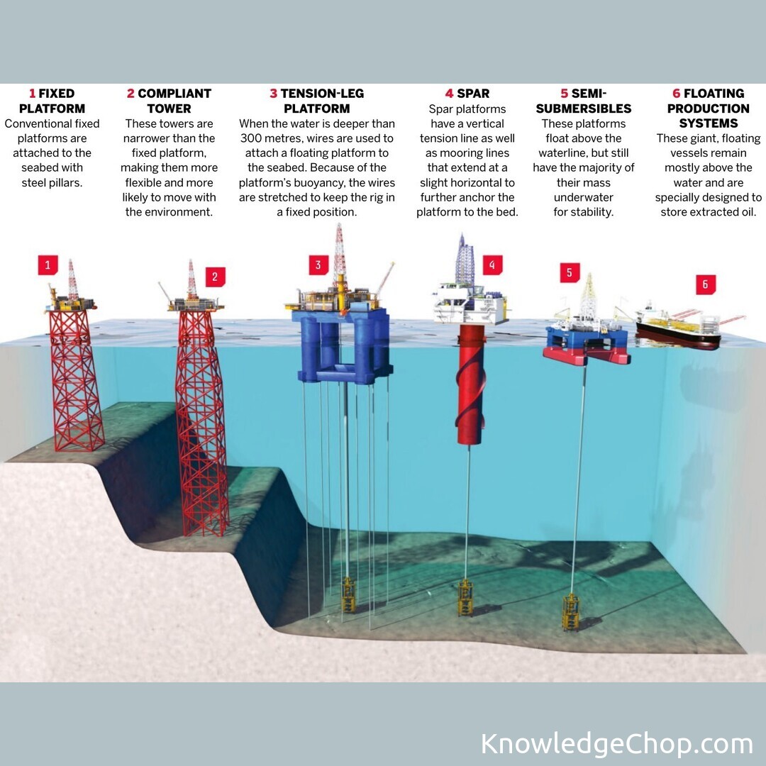 5. Spar Platforms: Possessing advanced technology, these rigs are constructed with large, single, and cylindrical hulls. Spar platforms are ideal for drilling in ultra-deep waters where traditional platforms aren’t feasible.