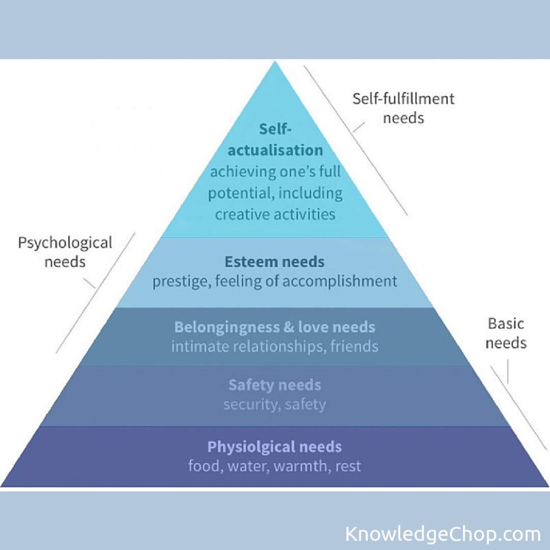 As a knowledge ninja, I wield the weapon of understanding, slicing through the perplexities of Maslow’s Pyramid of Human Needs. The pyramid consists of five levels, each illustrating a category of needs that must be met to reach the pinnacle of personal fulfillment.