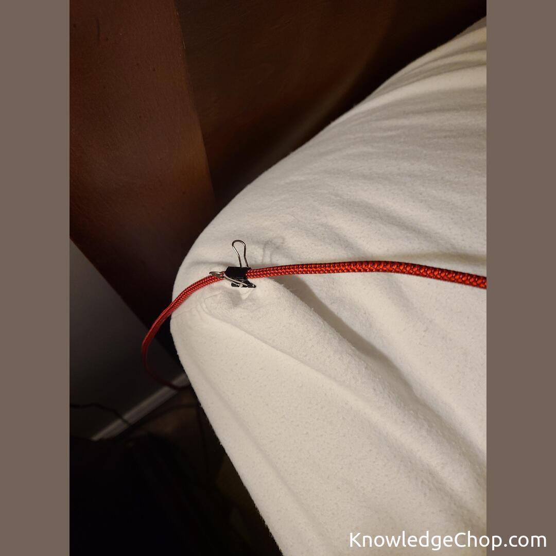 Use a small binder clip to keep your cell phone charging cord from falling off the bed