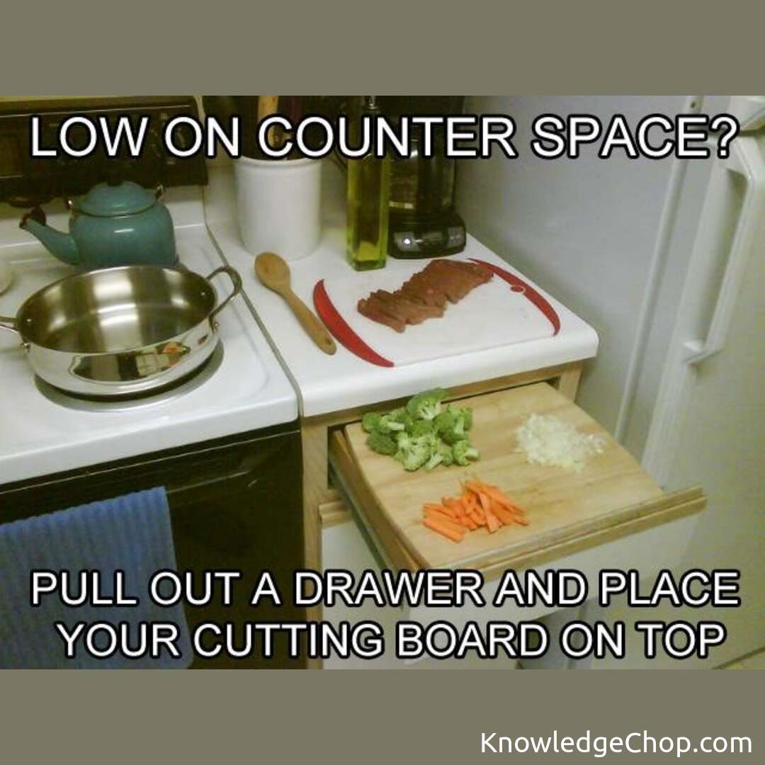 Useful trick if you have no room left on the countertop while cooking