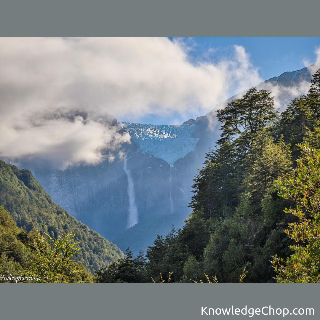 Ventisquero Colgante, the hanging glacier of Queulat National Park in Chile.