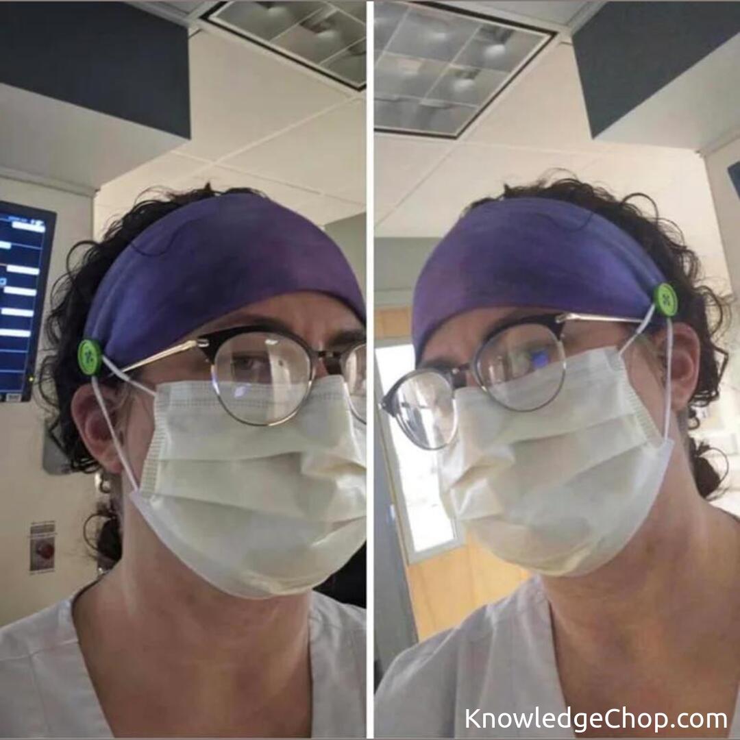 Wearing a Face Mask For An Extended Period Of Time. Sew a Button To a Headband To Keep From Destroying Your Ears.