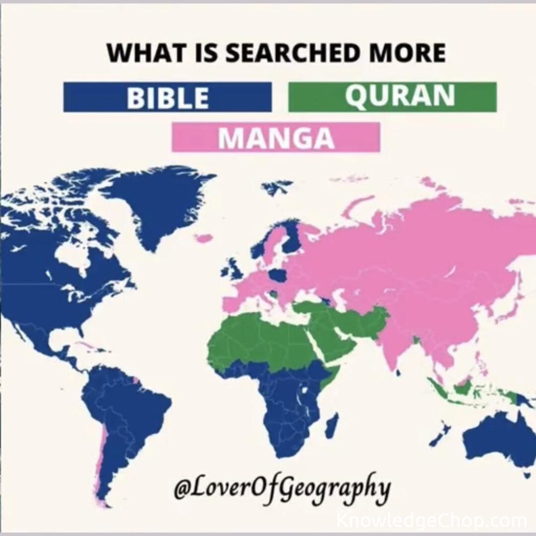 What do people search for most out of three possibilities: The Bible, The Quran, or Manga
