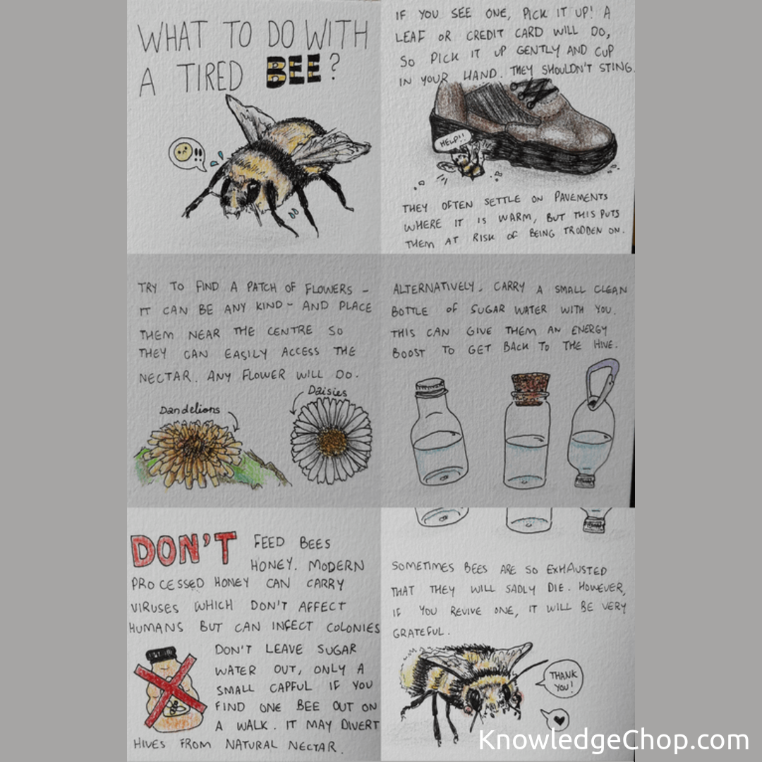 What can you do with a tired bee? Check out my illustrations to find out! #Print #NoPerson #Text #Medicine #People #Invertebrate #Biology #Insect #Paper #Vehicle #Collection #Bee #Illustration #Food #Aircraft #Sign