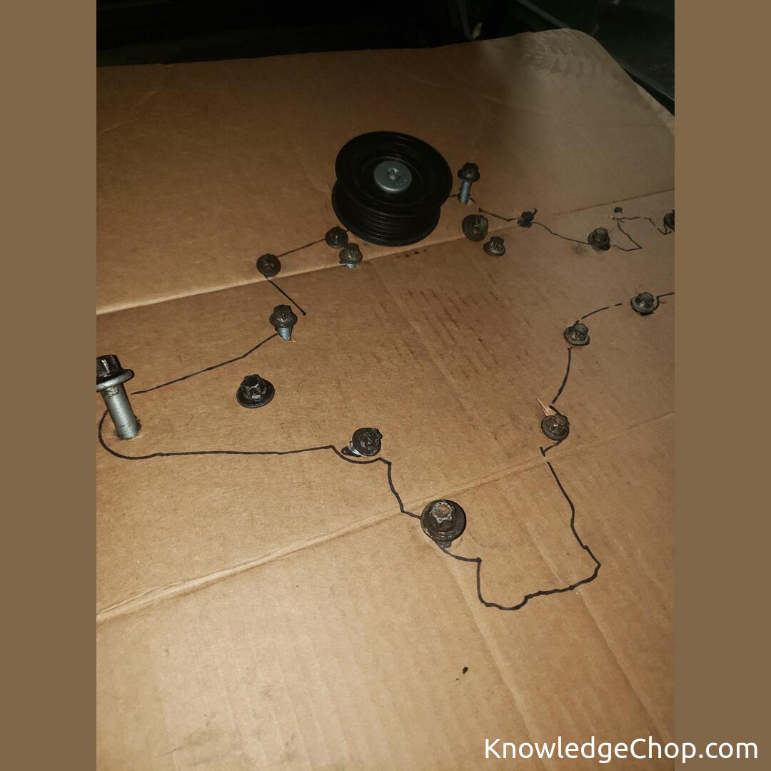 When replacing a car part, trace the part onto cardboard and cut holes where the bolts should go. Easy life hack to keep track of which bolt goes where.