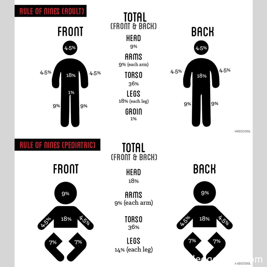 When they say a person has burns over X% of their body, the rule of 9s is how that’s determined.