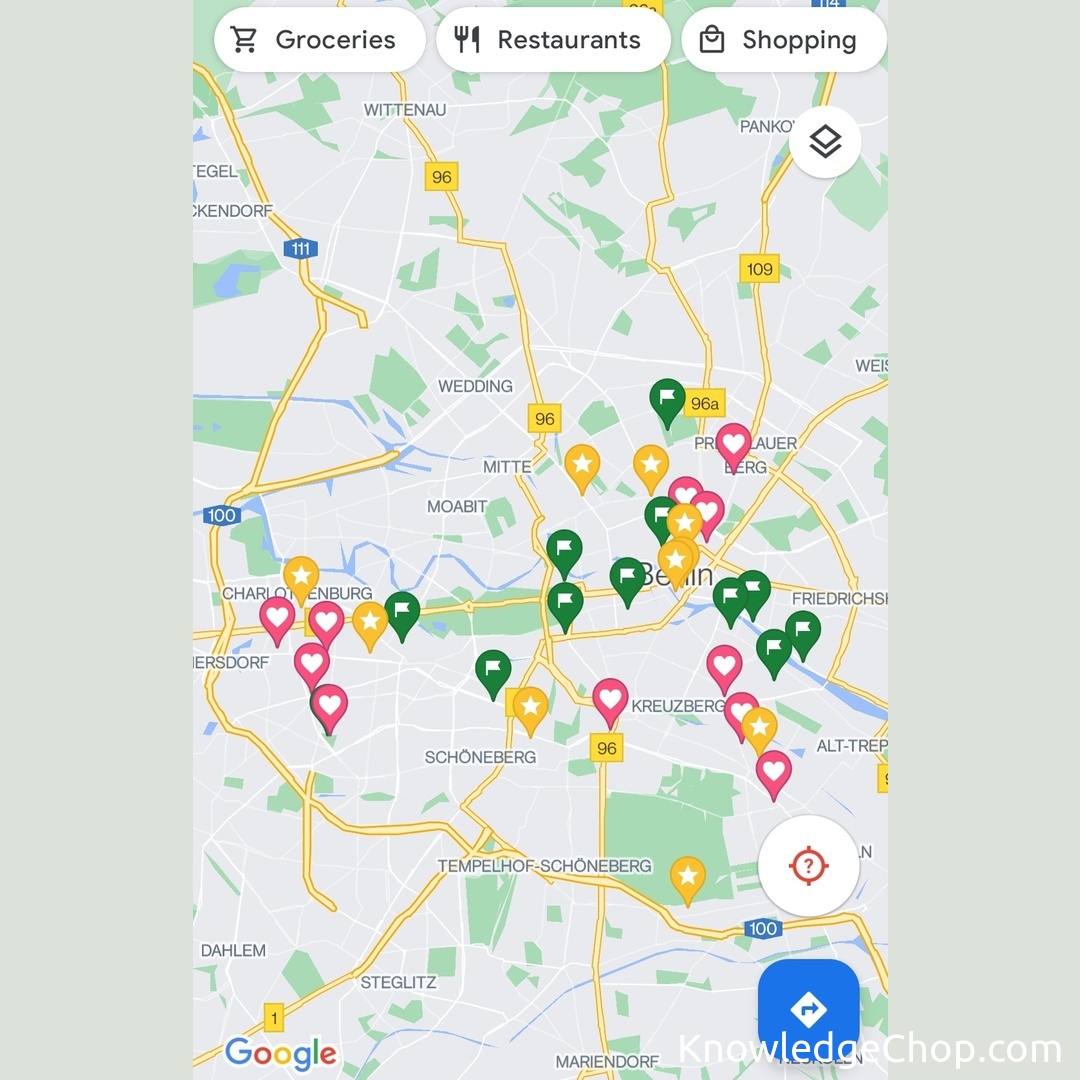 When travelling, divide you maps into 3 categories: things to see/do (flag), places to eat (hart), places to drink (star). Makes it easier to plan your day.