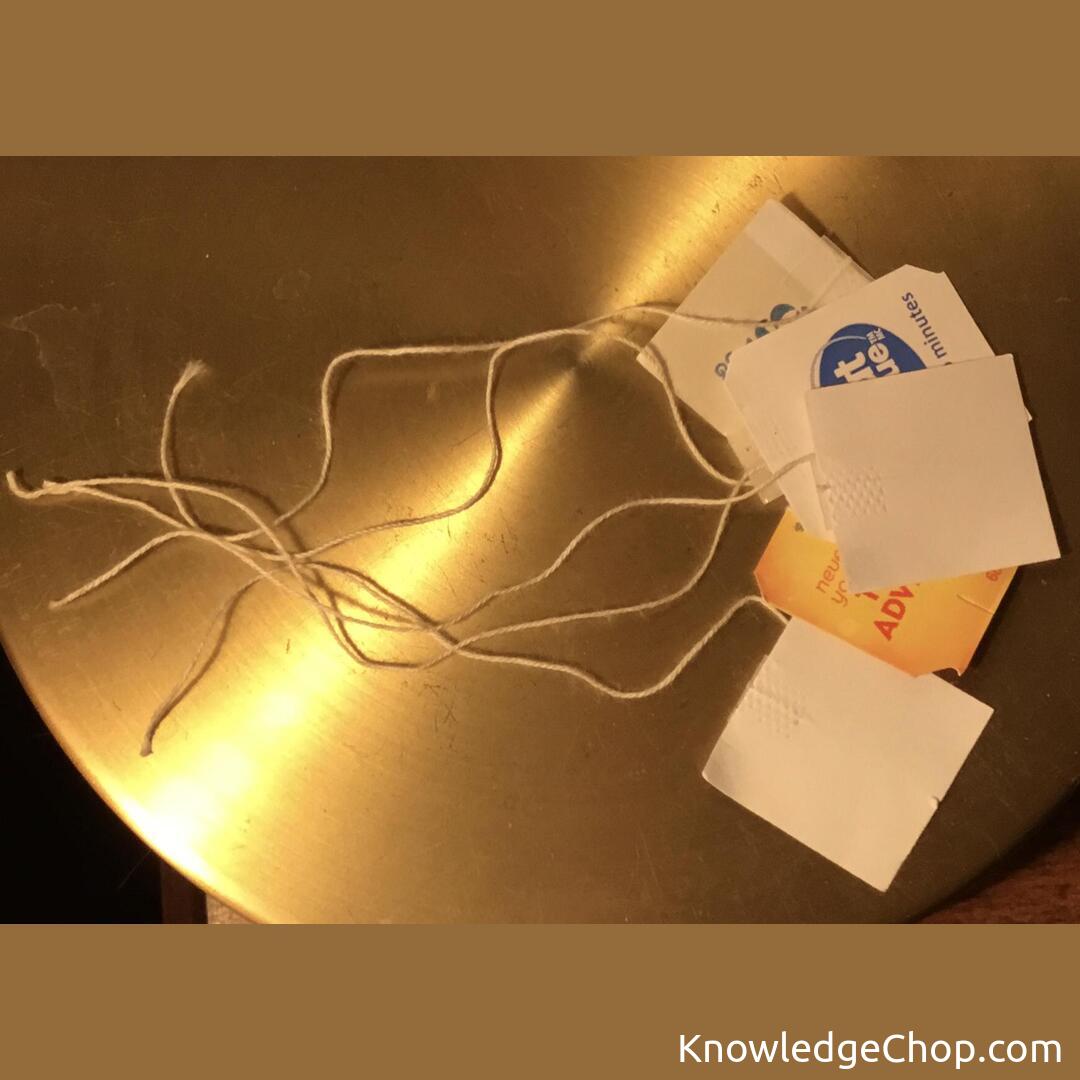 When you’re out of dental floss, you can use a string/tag from a teabag. It works!