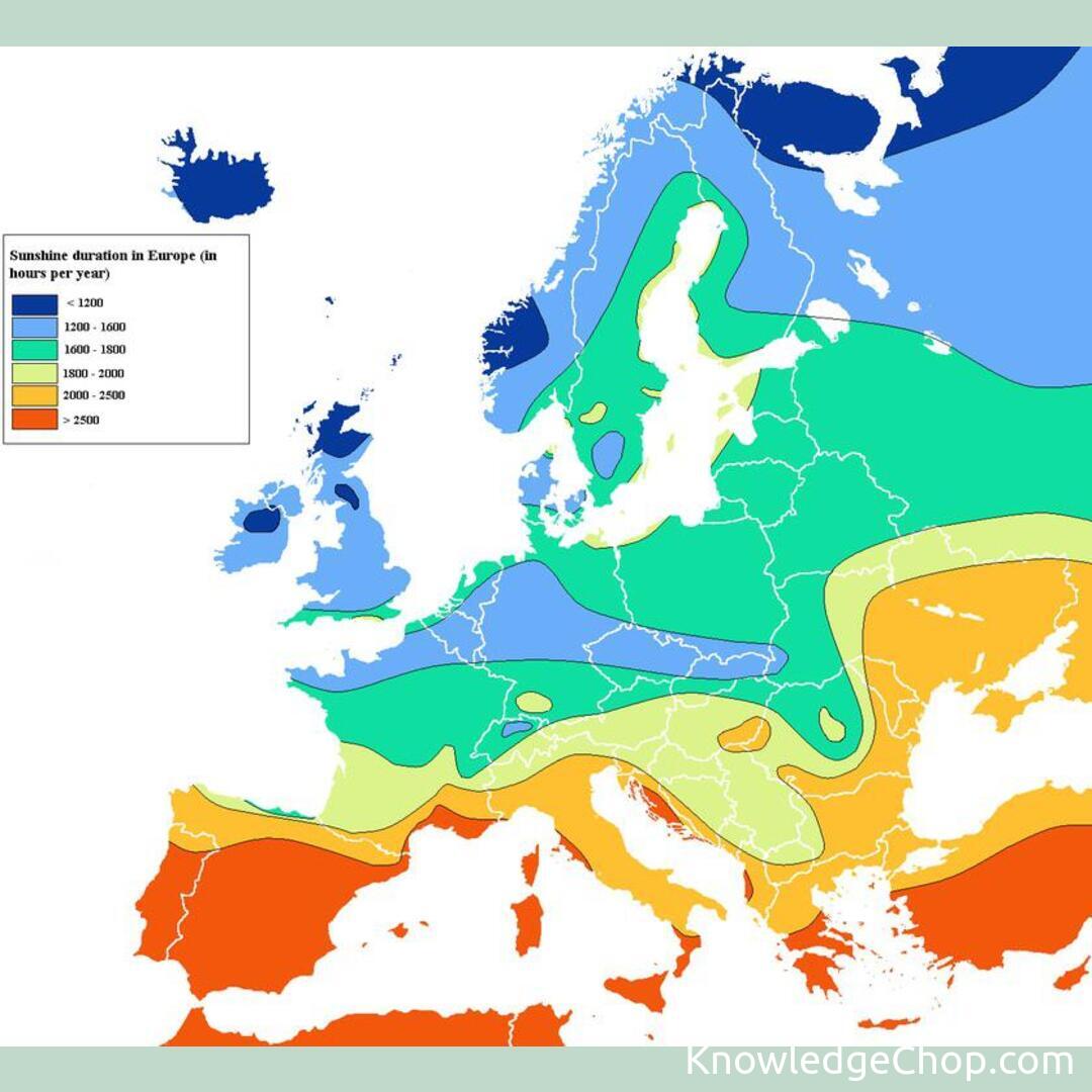 Home/Cool Guides/Yearly Sunshine Hours in Europeš Cool GuidesYearly Sunshine Hours in EuropeMar 28, 2022ā¢1 min read Yearly Sunshine Hours in Europe Found this guide helpful? š„·Share on XAll Cool GuidesHomešMore Cool GuidesKeep exploring and learningAnnual Sunshine HoursRead āAnnual Sunshine HoursRead āMt. Rainier early morning sunshine (OC) [5287 x 6995]Read āThe red sun rises in Banff NP. Actually this is 3 hours after sunrise this past Saturday, the forest fires are unrelenting this year as Iām sure many of you in North America are experiencing. [OC] [1600 2000]Read āMissing scenes like this! Taken in Sibenik, Croatia last year during a backpacking trip in Europe.Read āCrowning Glory: Unmasking the Majesty of Europe s Imperial and Royal Regalia šāāļøš¤“Read āExplore All Cool Guides
